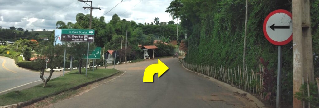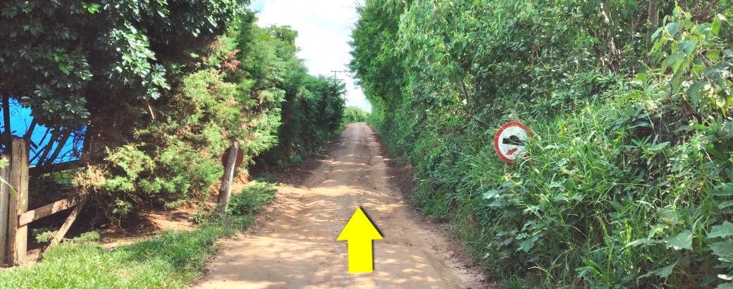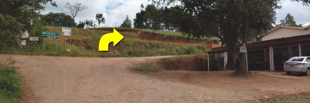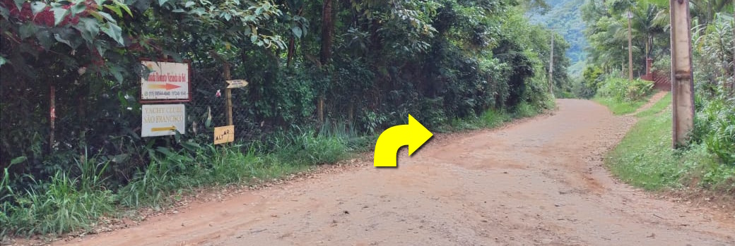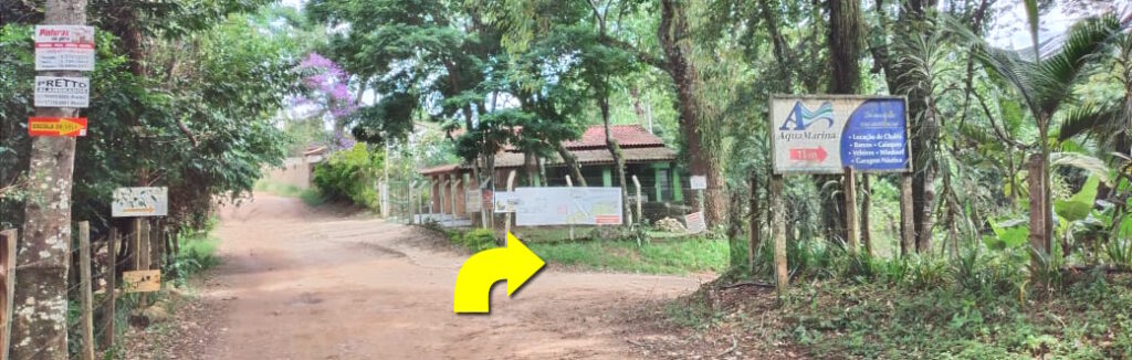 Passar pelos pontos de ônibus. Assim que entrar na terra, virar à direita.