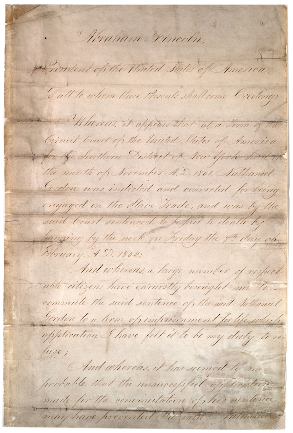 President Abraham Lincoln’s letter about Captain Gordon case.